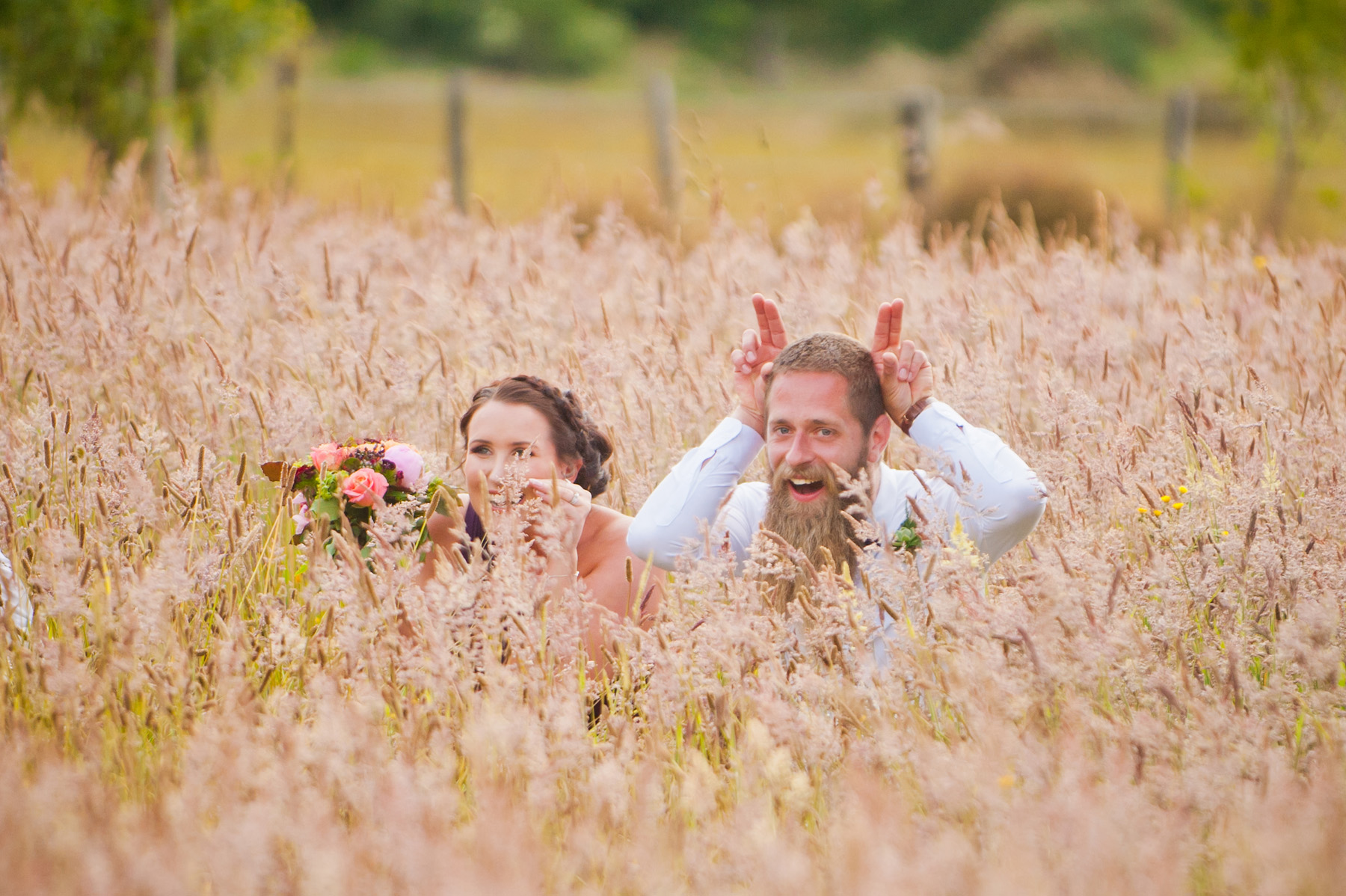 Michaela and Ryan are such down-to-earth characters, we had great fun with them and theirs on their gorgeous day. It was one of those super hot Wairarapa days, you could almost see the steam rising off the ground – the wedding was outside with no shade but Michaela had thought ahead and there were plenty of shade umbrellas for those who wanted them.
